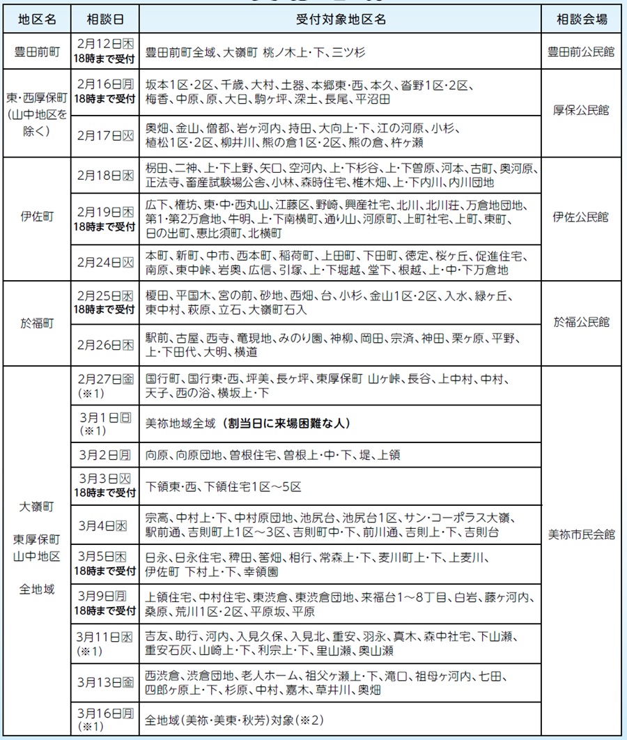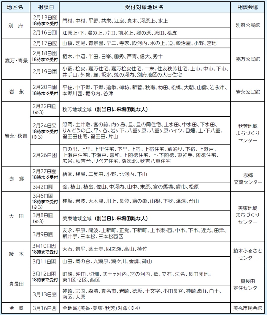 (※4)3月16日(月)の確定申告最終日を全地域の予備日としています。(会場 美祢市民会館)