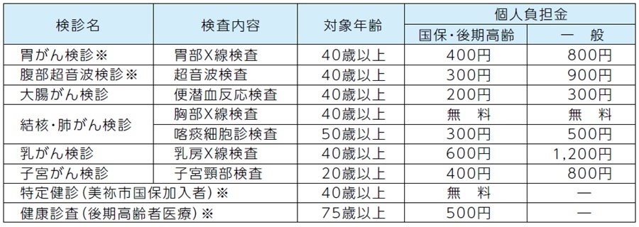 各検診の詳細(※は朝食を抜いて行う検査ですのでご注意ください。)