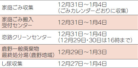 くらし 年末年始の市の施設や業務の休み 12月27日(土)~令和8年1月4日(日)
