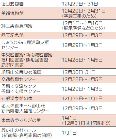 ※徳山駅前図書館は休館しませんが、12月31日・1月1日は開館時間が9時30分~20時になります。