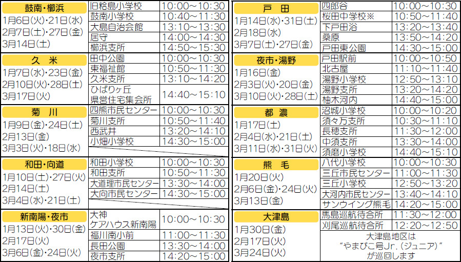 ※令和8年3月から、戸田コースの巡回場所が桜田中学校から戸田支所に変更になります