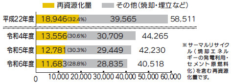 リサイクルプラザペガサス稼働前の平成22年度に比べ、約1万8,000トン、率にして約31パーセント削減されました。