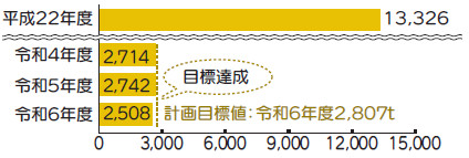 平成22年度と比べると、約1万800トン、率にして約81%減少しました。