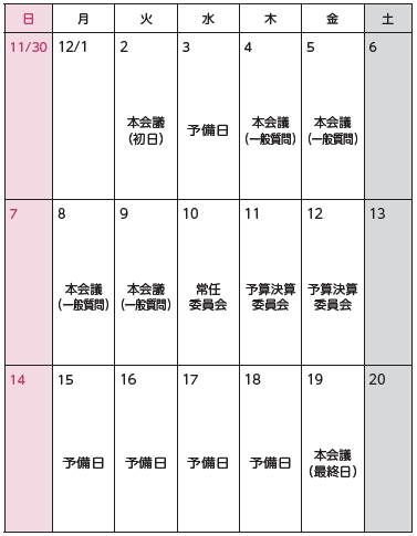※本会議・委員会は、午前9時30分から開催します。(土・日・祝日は休会です。)