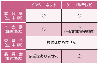 委員会の様子は、2時間程度にまとめた番組を録画放送します(ケーブルテレビのみ)。