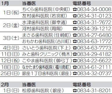・時間外の診療は消防本部指令課【電話】0834-22-8765へ問い合わせてください。