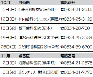 ・時間外の診療は消防本部指令課【電話】0834-22-8765へ問い合わせてください。