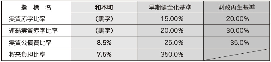 「地方公共団体の財政の健全化に関する法律」に基づき、町の財政状況を判断する財政指標を公表します。