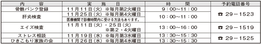 健康 岩国健康福祉センター(保健所)の相談会・検査等予定 8/41 前の記事 次の記事 発行日 : 2025年11月01日 自治体名 : 山口県和木町 広報紙名 : 広報わき 令和7年11月号 No.632 住所:岩国市三笠町1-1-1 いずれも無料でご利用いただけます。予約電話番号までご連絡ください。 Tweet シェアする からだ応援ページ 図書館からのお知らせ