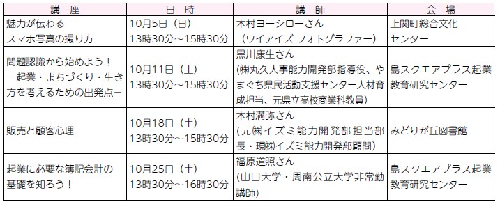 申込み・問い合わせ先:〒742-2106 周防大島町小松91-4 NPO法人島スクエアプラス