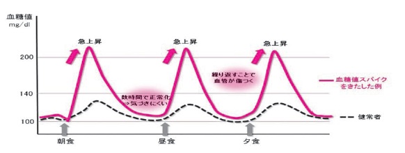 食後高血糖の繰り返しが、血管を傷め、動脈硬化を引き起こします。