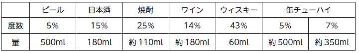 ※純アルコール量はアルコール度数(%)や摂取量(ml)で変わるので、ご注意を!