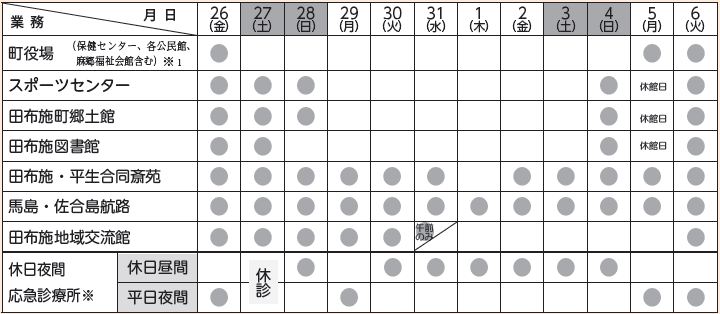 ※1 婚姻、死亡などの戸籍の届出については、休みの日も町役場の宿日直が受け付けます。