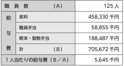 ※平均給与月額は、給料と職員手当(期末・勤勉手当を除く)をあわせたものです。