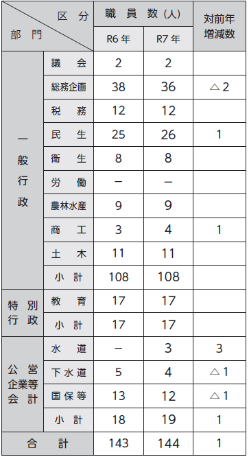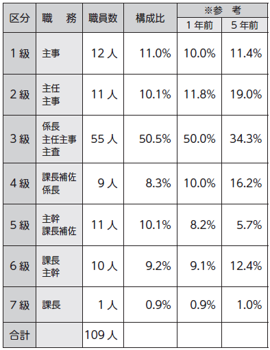 ※町の給与条例に基づく給料表の級区分による職員数です。