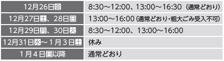◆年末年始のごみ処理