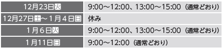 休業日:12月27日(土)~1月4日(日)