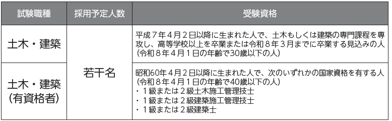 ※土木・建築の受験者(有資格者)…受験資格に係る「資格証明書・免許証等の写し」を同封してください。