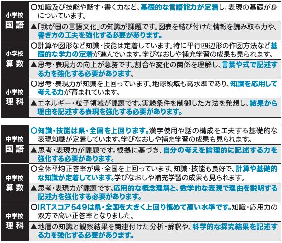 結果は、成果・課題の検証を通した教育施策の改善や、それぞれの学校での教育指導の充実や学習状況の改善などに役立てられます。