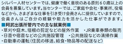 しごと シルバー人材センター会員募集中!!〝あなたの知識や経験を活かして一緒に働きませんか〞 43/53 前の記事 次の記事 発行日 : 2025年10月20日 自治体名 : 山口県阿武町 広報紙名 : 広報あぶ 令和7年10月号 問合せ:萩広域シルバー人材センター阿武出張所 【電話】2-2803 Tweet シェアする みんなでつくろう明日のページ 阿武町の人口と世帯数(9月末)