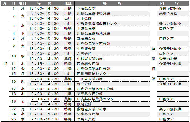 ※健康相談の受付時間は、基本的に開始時刻から30分間です。