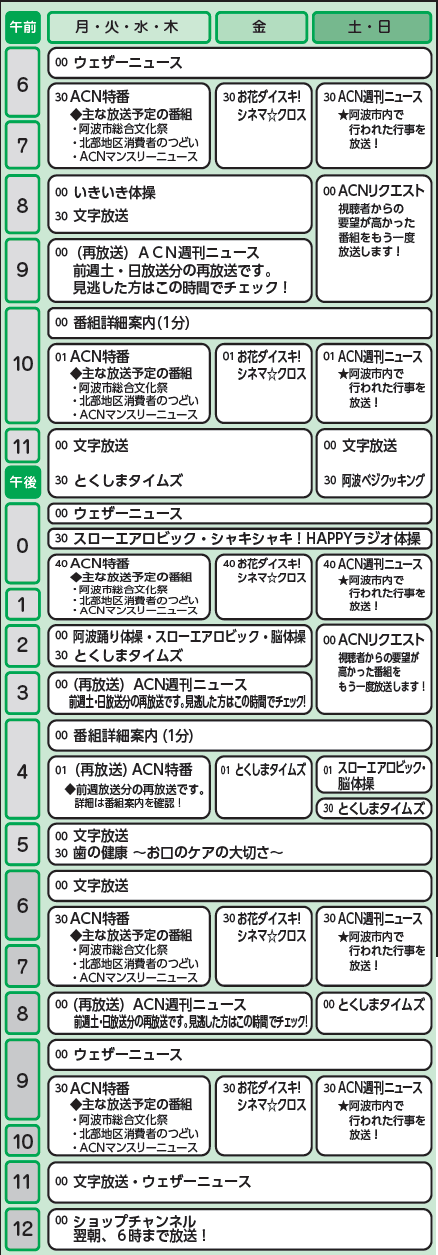 ※番組の詳細はACNホームページおよびデジタルTV番組表(EPG番組表)にてお知らせします。
