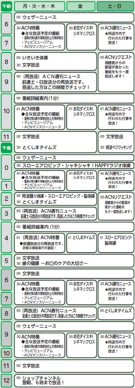 ※番組の詳細はACNホームページおよびデジタルTV番組表(EPG番組表)にてお知らせします。
