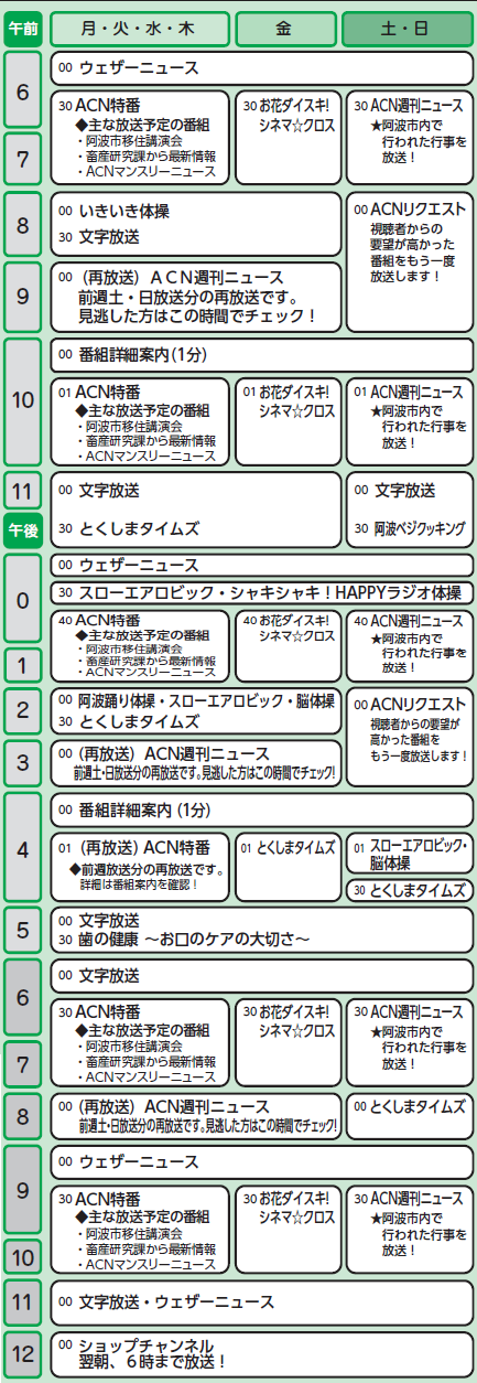 ※番組の詳細はACNホームページおよびデジタルTV番組表(EPG番組表)にてお知らせします。