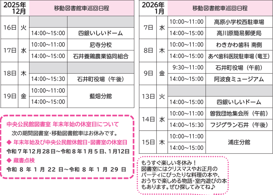 問合せ:石井町中央公民館図書室(直通)