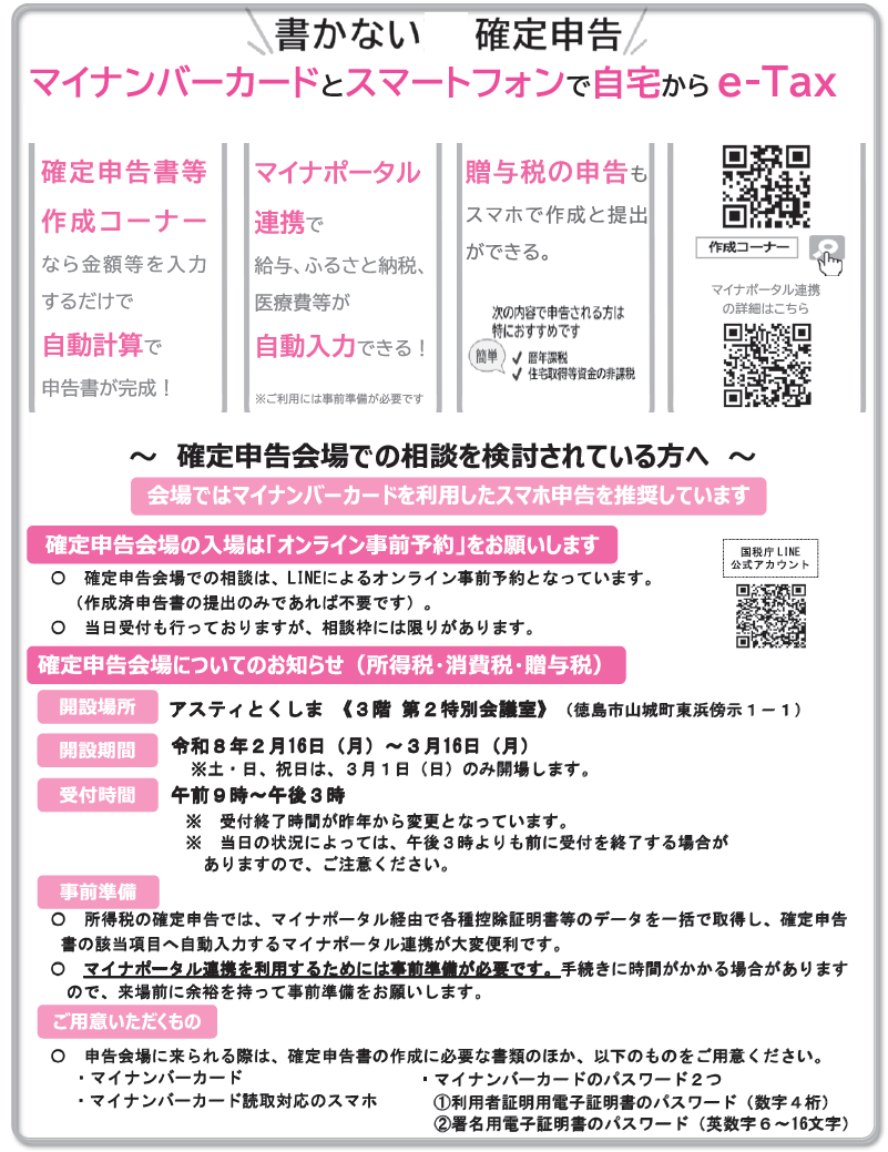 くらし 徳島税務署からのお知らせ 16/38 前の記事 次の記事 発行日 : 2026年01月15日 自治体名 : 徳島県石井町 広報紙名 : 広報いしい 第283号(2026年1月) 問合せ:徳島税務署 〒770-0847 徳島市幸町三丁目54 【電話】088-622-4131 Tweet シェアする 税務課からのお知らせ お買い物して応募しよう♪ お買い物ラリー