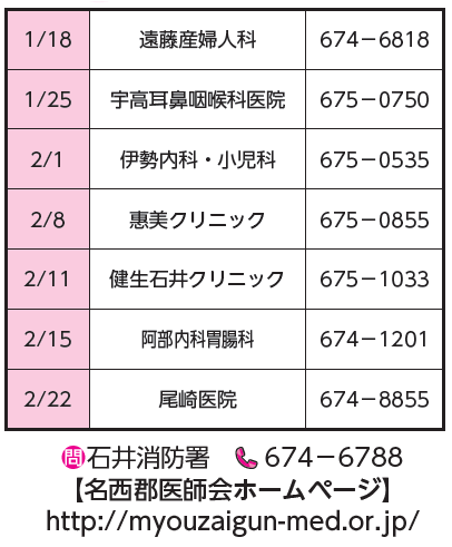 くらし 日曜・祝日当番医 33/38 前の記事 次の記事 発行日 : 2026年01月15日 自治体名 : 徳島県石井町 広報紙名 : 広報いしい 第283号(2026年1月) 診療時間:午前9時~午後5時 Tweet シェアする 未来へつなぐ 青年部紹介 受診に迷った時は