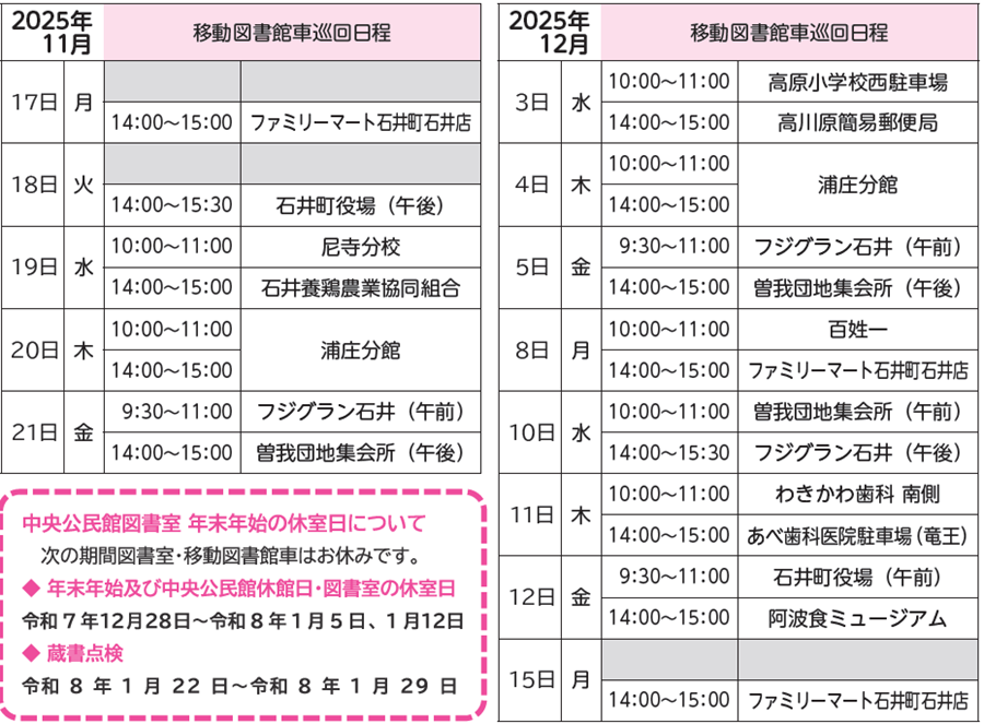 ◆移動図書館車ふじっこ2号巡回スケジュール