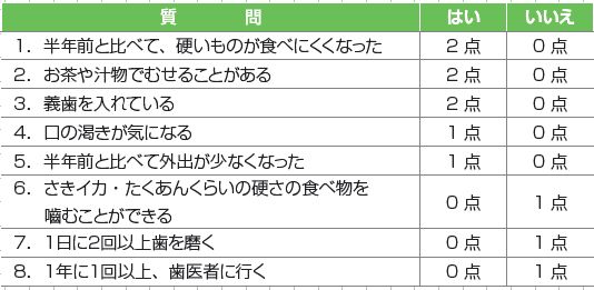 オーラルフレイルとは、「口の機能が弱ってきている状態」のことです。意識しにくい口の機能のささいな衰えが積み重なることで、お口の機能低下、食べる機能の障害を起こし、さらには心身の機能低下にまでつながります。