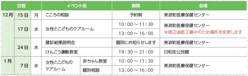 健康 保健事業一覧 6/35 前の記事 次の記事 発行日 : 2025年12月12日 自治体名 : 徳島県美波町 広報紙名 : 広報みなみ 2025年12月号 ※事前予約が必要です。 お問い合わせ:健康増進課 【電話】0884-77-3621 Tweet シェアする 地域包括支援センター行事予定 いきいき100歳体操をはじめませんか?