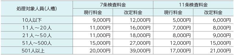 次の条件を全て満たした場合は、処理対象人員10人以下の11条検査料金に限り、現行料金に据え置く措置を行います。詳しくは、本紙右下のQRコードからご確認・お申込みください。