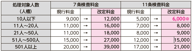 以下のとおり、令和7年10月1日の法定検査実施分から法定検査料金が改定されます。なお、届出時に前納する7条検査料金及び11条検査料金については、令和7年10月1日以降の届出受付分から改定料金が適用されます。
