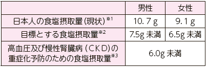 表2.日本人の食塩摂取量と摂取目標量(1日当たり)