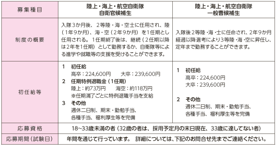 しごと 自衛官等採用案内 30/48 前の記事 次の記事 発行日 : 2025年11月01日 自治体名 : 徳島県上板町 広報紙名 : 広報かみいた 令和7年11月1日号 第329号 問合せ:自衛隊鳴門地域事務所(鳴門市撫養町立岩字七枚57) 【電話】088-685-5306 ※鳴門地域事務所では随時説明会を実施していますので、ご予約頂ければ柔軟に対応いたします。 Tweet シェアする 令和8年度 さくら保育所入所申し込み受付 上板の古道観音道ウォーク開催のお知らせ
