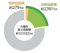 災害が少なく温暖な気候に恵まれた香川県は、農業の視点でみると、様々な作物を育てやすい土地柄です。市の特徴は「耕作面積がコンパクトで多品目であること」と「米麦や野菜・果樹などを組み合わせた複合型農業が多いこと」。飯南の桃やさぬきのめざめ(アスパラガス)などのブランド品目に加え、県内有数の栽培面積を誇るナスやレタス、なばなの栽培も盛んです。近年では、米との二毛作がしやすいブロッコリー栽培も増加しています。