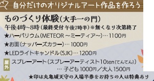 イベント 丸亀お城アソビ2025 castle art festa III 9/78 前の記事 次の記事 発行日 : 2025年10月01日 自治体名 : 香川県丸亀市 広報紙名 : 広報まるがめ 令和7年10月号 今宵、丸亀城にアートがあふれる 10.4(土)午後4時~8時半 問い合わせ:市観光協会 【電話】85-5852 Tweet シェアする 丸亀城お笑い人力車芸人・大木亀丸プレゼンツ カメフェス2025 [入場無料] 丸亀城キャッスルロードReborn 2025-2026