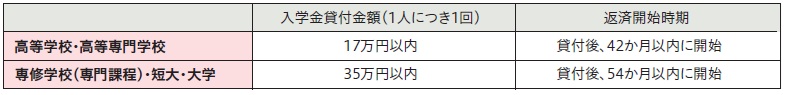 高校・大学などへの入学金の支払いが経済的な理由で困難な人を対象に、無利子で貸し付けます。