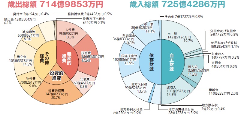 歳出の総額は714億9853万円で、前年度と比較して約86・5億円の増加となりました。