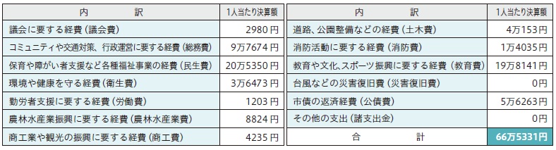 ○令和6年度の決算を市民1人当たりに換算