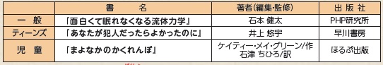 ※ご紹介している本は、各館で所蔵状況が異なります。詳しくは、職員にお尋ねください。