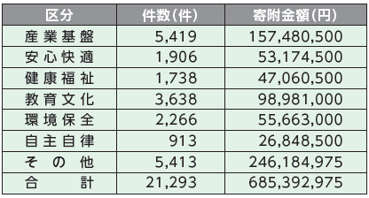 掲載しているもののほか、子ども医療費支給事業や生活環境整備などでも寄附金を活用させていただきました。
