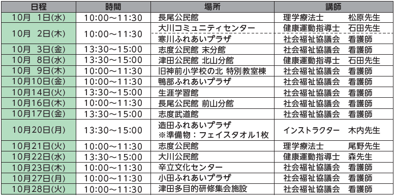 シニア世代の方が、住みなれた地域で、自分らしく元気で自立した生活が長く送れるように、体操や認知症予防のレクリエーションを楽しみながら、介護予防ができる教室を開催しています。(予約不要で、自由に参加できます)
