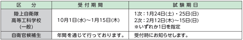 問合せ・申込先:自衛隊香川地方協力本部 さぬき地域事務所