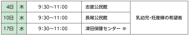 ●乳幼児相談(身長・体重測定、育児相談、栄養相談)・妊産婦相談