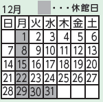 12月29日(月)~1月3日(土)は休館させていただきます。新年開館は1月4日(日)です。