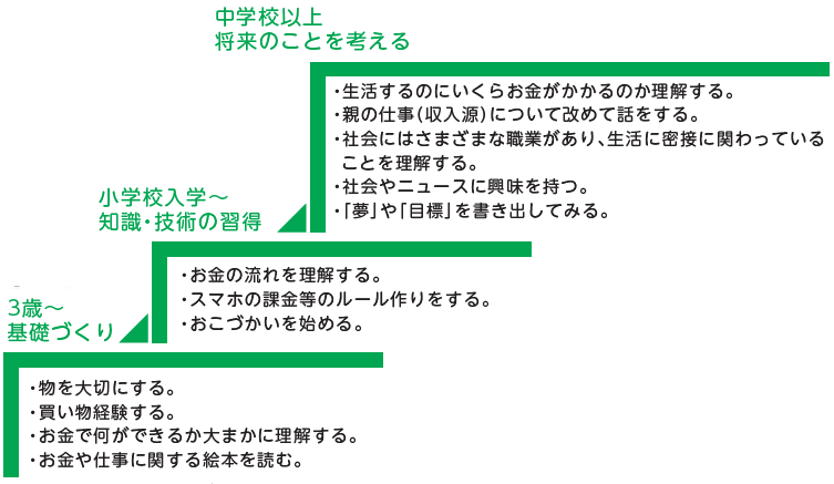 ■家庭での子どもの金融教育は、成長や理解力に応じて段階的に